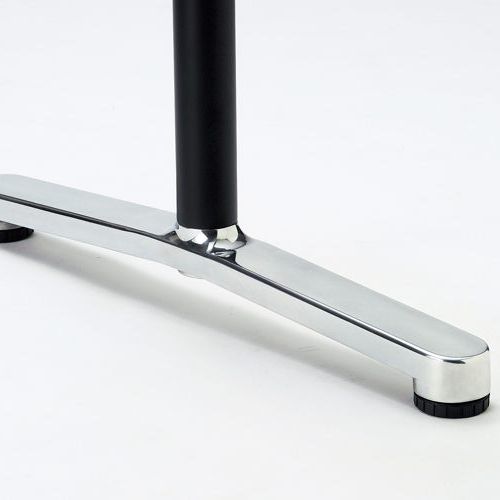 テーブルの脚部支柱はブラックカラー粉体塗装のスチールパイプ、脚部ベースはアルミダイキャストポリッシュ仕上げを採用しています。