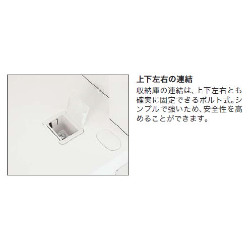 CW型・CWS型収納家具の連結は、上下左右とも確実に固定できるボルト式となっており、シンプルで強いために安全性を高めることができます。