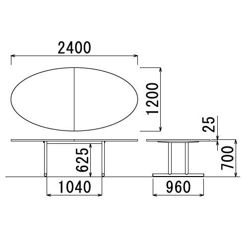 幅2400mm×奥行1200mmのタマゴ形・卵形天板タイプのミーティングテーブルです。