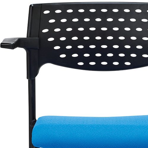 席に着いた時や席を離れる時にスムーズな動作をサポートするハーフ肘が付いた会議用チェアです。