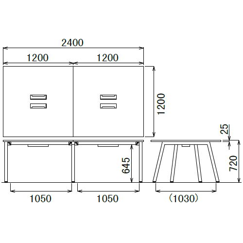 - 幅2400mm×奥行1200mm×高さ720mm