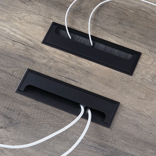 テーブル天板中央には、市販のOAタップ等をスマートに収納できるコードホールが付属しています。