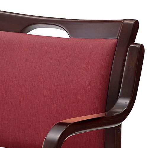 木製ダークブラウンフレームの積み重ね収納できるハーフ肘付き介護椅子。