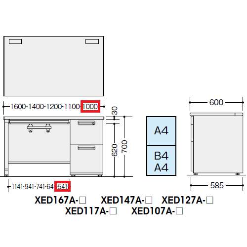 袖箱の引き出しは、A4/B4・A4の2段となります。