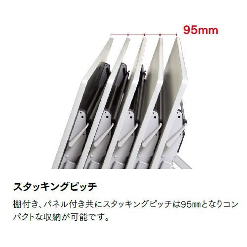 スタッキングした際の間隔サイズであるスタッキングピッチは95mmで、コンパクトな収納が可能となっています。